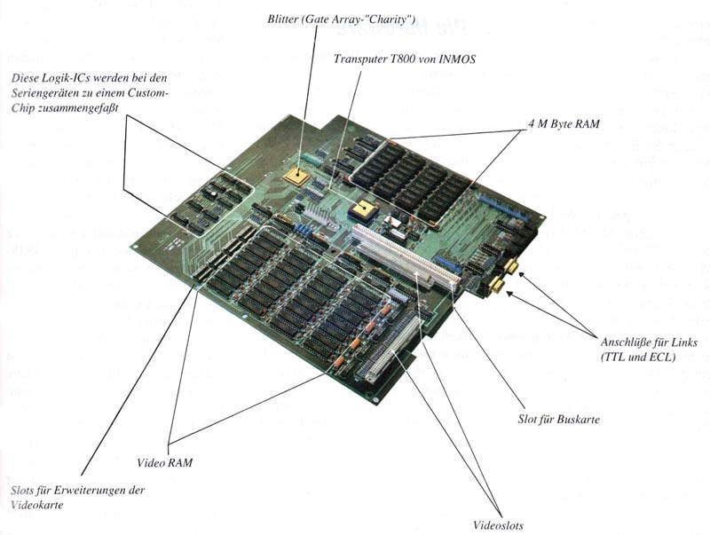 - Speichererweiterungen für den Haupttransputer. Karten mit bis zu 12 MByte auf einer Platine werden angeboten.