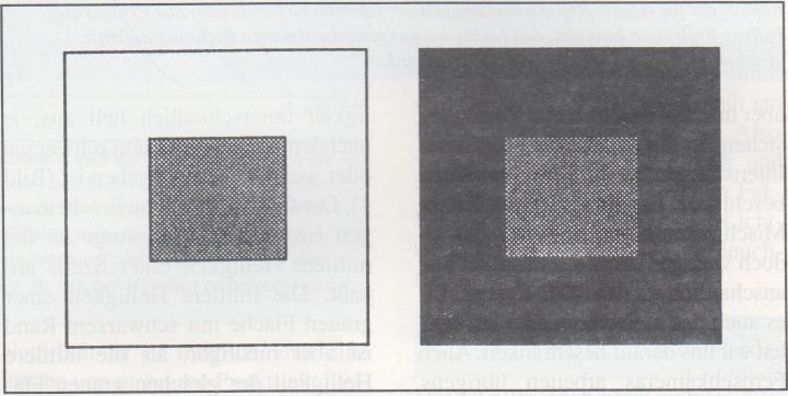 Bild 1: Optische TÀuschungen. Die graue FlÀche in der Mitte hat in beiden Feldern die gleiche Helligkeit. Trotzdem erscheint sie dunkler, wenn sie von einem hellen Rand umgeben wird. Dies ist eine Folge der Kontrastmittelung des Auges.
