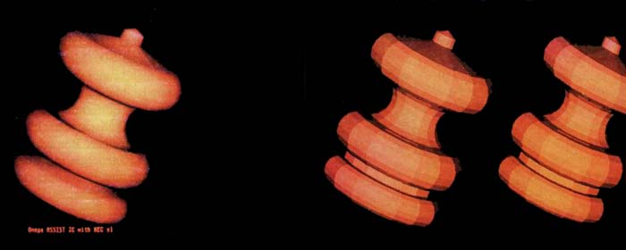 Bild 7a & b: Flatshading und Gouraudshading im Vergleich. Bilder von Hartmut Wagener, berechnet auf einem ST mit einer Grafikkarte von Omega Datentechnik.