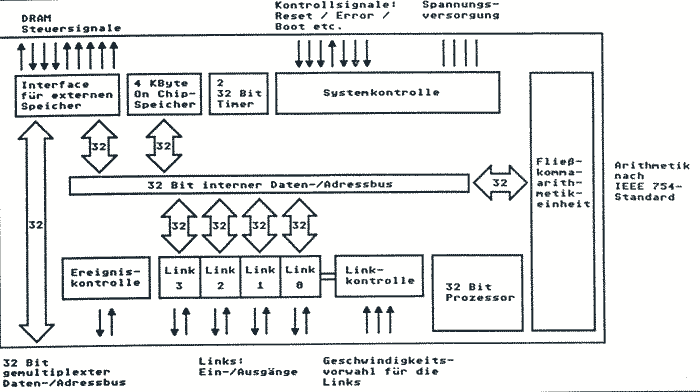 Was heißt das eigentlich Transputer bzw. was kann man sich darunter vorstellen? Zunächst einmal ist dies ein Mikroprozessor wie auch der 68000, doch unterscheidet er sich von diesem durch einige gravierende Dinge.