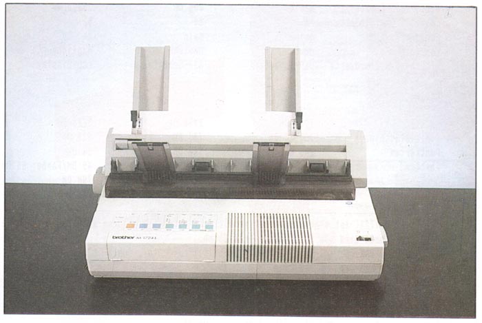 Die GerĂ€usche jedoch, die der M-1724L beim Bewegen des Papiers erzeugt, sind alles andere als ein GenuĂ. Auch nach lĂ€ngerer Arbeit mit ihm kommt immer wieder die BefĂŒrchtung auf, das GerĂ€t zerfiele sofort in sĂ€mtliche Bestandteile. Die DIP-Schalter liegen versteckt unter einer Klappe im Innern des GerĂ€tes und sind schlecht zu erreichen. Der Druckbereich ist schlecht ablesbar, da er durch eine undurchsichtige Klappe abgedeckt wird. Dagegen ist das Zeilenlineal bei der Verwendung von Einzelblatt sehr gut zu erkennen. Eine AbreiĂkante existiert leider nicht. Mit der Epson-KompatibilitĂ€t verhĂ€lt es sich, wie im Kasten beschrieben: Der IBM-Zeichensatz ist nur im IBM-Modus erreichbar und der wiederum lĂ€Ăt sich nur durch DIP-Schalter wĂ€hlen. Leider ist auch das Handbuch ein schlechtes Beispiel. Es fĂ€llt durch UnĂŒbersichtlichkeit und fehlenden Index auf. Der Brother bietet die Möglichkeit, Dokumente per Tastenfeld zu kopieren. Da sich sein Speicher auf 54 kByte ausbauen lĂ€Ăt, genĂŒgt das fĂŒr einige Seiten. Weitere Besonderheit: Das GerĂ€t erlaubt auch die Verarbeitung von Postkarten. DafĂŒr muĂ lediglich ein Hebel (wiederum an der AuĂenseite) umgelegt werden.