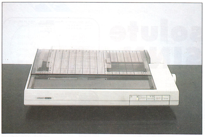Der Citizen kommt im flachen, weiĂen GehĂ€use daher, aus dem kein Hebel hervorragt. Sein Tastenfeld reduziert sich auf vier ĂŒbersichtliche Tasten, ĂŒber die leider nur die SchriftqualitĂ€t und das Fontmodul gewĂ€hlt werden können. Eine Taste fĂŒr die Einstellung der Schriftbreite fehlt. Unterhalb des Tastenfeldes befindet sich an der Vorderseite die Klappe fĂŒr die DIP-Schalter. Auch unter einer Klappe, jedoch an der Oberseite des GerĂ€tes, finden sich die SchĂ€chte fĂŒr zwei Fontkarten. Das Einlegen des Endlospapiers gestaltet sich als Ă€uĂerst schwierig. Folgt man dabei den Anweisungen des Handbuchs, so verrenkt man sich fast die Finger, denn immer sind Teile der Einzelblattrutsche im Weg. Erst wenn diese entfernt ist, wird es etwas einfacher. Zu gut haben es die Konstrukteure mit einer Automatik zum Einzug des Papiers gemeint: Meldet der Papiersensor neues Papier, so beginnt der Drucker sofort, es weiterzuziehen. Das geschieht ungeachtet irgendwelcher Hebelstellungen, obwohl dafĂŒr der Papierandruckhebel erst in die âEinrichtenâ-Position gebracht werden mĂŒĂte. So wird manches Blatt in der Mechanik zerknĂŒllt. Erschwerend kommt hinzu, daĂ just der entscheidende Papiersorten-Hebel unter einer Klappe liegt, die die gesamte OberflĂ€che des Druckers bedeckt. Das Einlegen von einzelnen BlĂ€ttern gestaltet sich zwar erheblich einfacher, erfordert aber auch FingerspitzengefĂŒhl. Hinzu kommt wieder die Automatik, die ohne Vorwarnung oder Befehl das Blatt einzieht. Der Citizen ist der einzige Drucker im Test, der ĂŒber keine Papierparkfunktion verfĂŒgt, so daĂ die MĂŒhsal des Einlegens von Endlospapier nach jedem Einzelblatt wieder ansteht.