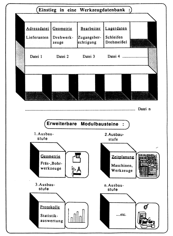 Das Baukastenprinzip in Abb.3 zeigt den Einstieg und die Erweiterung einer Werkzeugdatenbank, welche sich z.B. in einem Unternehmensbereich ergeben könnte.