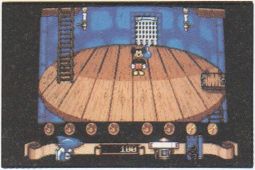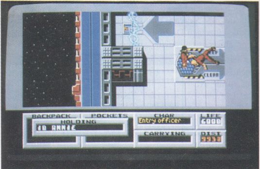 Spielerisch ist dies realisiert, indem Sie Ihr Männchen, das Sie mit dem Joystick bewegen, in einer GAUNTLET-ähnlich gemachten Grafik bewegen, die das Raumschiff von oben perspektivisch zeigt. Dabei treffen Sie in den vielen Räumen, die teilweise durch normale Schiebetüren oder aber auch Energiebarrieren versperrt sind, die nur mit bestimmten Identitätskarten zu passieren sind, auf die unterschiedlichsten toten und lebenden Gestalten. Darunter sind ein Chemiker, ein Wackobrain (hüpfendes, rundes Etwas), diskus-ähnliche Wächter, einen Squashspieler und viele andere.