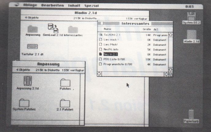 Das Drucken mit Postscript-Laserdruckern ist jetzt möglich. Damit können alle Macintosh-Textanwendungen auf dem ST in voller Qualität Ihre Texte zu Papier bringen. Unter ALADIN 2.1 paßt nicht nur eine volle DIN A4-Seiten-Breite auf einen Bildschirm, eine Seite kann jetzt auch vernünftig ausgedruckt werden.