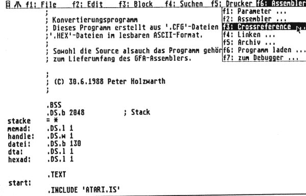 Bild 3: Der GFA-Assembler verfügt über eine Pseuedo-GEM-Menüleiste.