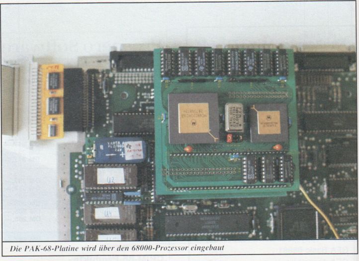 Für die PAK-68-Karte gibt es außerdem noch zwei Erweiterungen: Die PUK-Umschaltplatine, mit der man zwischen 68000 und 68020 umschalten kann, und eine PAK-68-MEM-Karte, die die 32-Bit-CPU erst so richtig aufleben läßt. Die PUK-Umschaltplatine ist besonders sinnvoll, denn nicht alle Programme laufen mit dem flotten 20er.