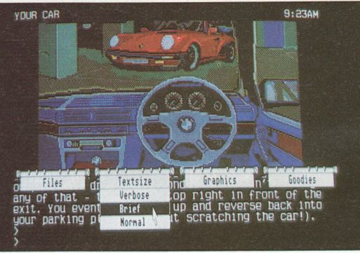 “Magnetic Scrolls”, bekannt durch THE PAWN und THE GUILD OF THIE VES, präsentiert ein neues, packendes Adventure, das Sie in die knallharte Geschäftswelt führt. Eines schönen Morgens wird Ihnen die Partnerschaft in einer Firma angeboten, ein Geschäftswagen zur Verfügung gestellt und ein neues Büro eingerichtet. Doch über diese Annehmlichkeiten werden Sie sich nicht lange freuen, weil die Firma wenig später Konkurs anmelden muß. In der Rolle des plötzlichen Aufsteigers werden Sie zwischen Verantwortung, Bestechung und Leidenschaft hin- und hergerissen. Es muß gelauscht, gelogen, bestochen und betrogen werden, was das Zeug hält. Ihre Kommandos geben Sie, wie gewohnt, über die Tastatur ein. Der Parser versteht auch abgekürzte Befehle (z.B. “g” für get, “d” für drop) und ganze Sätze. Leider sind alle Texte nur auf Englisch. Man sollte schon mehr Vokabeln als den Grundwortschatz in petto haben, um alle Situationen zu verstehen. Wer sich beim Übersetzen der lustigen Texte Mühe gibt, bekommt dafür auch etwas geboten: Exzellente Grafiken! Die sehr gut gelungenen Bilder können per Maus über den Textschirm gezogen werden. Alle Grafiken sind äußerst detailreich und vermitteln die richtige Atmosphäre an den einzelnen Orten. Da trägt der verruchte Firmenchef einen Al Capone-Hut, ein Anwalt sieht aus wie ein Rechtsverdreher aus dem Bilderbuch und die später auftauchende Krankenschwester macht einen wirklich rührseeligen Eindruck. “Corruption” lebt von den vielen Einzelheiten. Wollen Sie beispielsweise bei roter Ampel eine Straße überqueren, werden Sie mit einer Mischung aus Witz und Ernst auf die Auswirkungen aufmerksam gemacht. Gehen Sie dennoch über die Straße, landen Sie unverzüglich im Krankenhaus. Neben der unterhaltsamen Handlung fielen einige komfortable Features auf, die auch schon in den Vorgängerprogrammen zu finden waren. Abspeichern des Spielstandes, Abstellen der Grafik oder eine Druckerausgabe aller Texte machen das Adventurespielen luxeriös. Apropos Luxus: In der Verpackung liegen neben der Anleitung auch ein Chip für ein Roulettespiel und ein Audio-tape. Auf der Kassette hören Sie eine Unterhaltung zweier Geschäftsleute, die zum lösen des Spiels von Bedeutung sein dürfte. Zudem gibt zur Entspannung noch ein paar Takte Musik. Alles in allem ist CORRUPTION ein spannendes Spiel aus der rauhen Geschäftswelt mit exellenten Grafiken und vielen Details. Wer an “Guilt of Thieves” und “Jinxter” schon seine Freude hatte, wird mit “Corruption” ebenfalls auf seine Kosten kommen. CBO