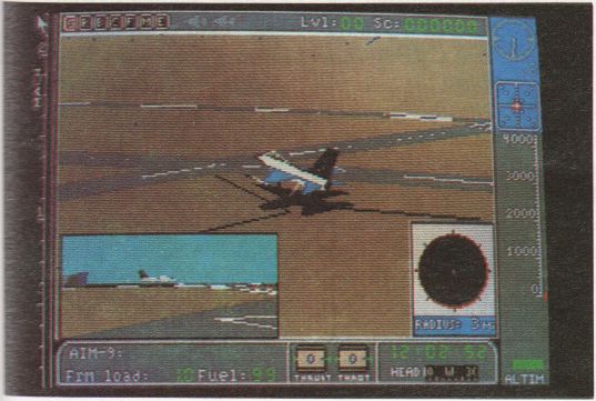 … ist die Freiheit leider nicht grenzenlos. Denn in “Jet” geht es darum, die “Welt zu retten”. Vor wem natürlich? Klar, vor den ach so bösen Sowjets, wobei wir schon beim ersten Kritikpunkt wären. Hersteller "Sublogic” schafft in “Jet” klare Feindndbilder. In einer Zeit, wo sich die beiden Politblöcke versuchen, einander anzunähern, sollte man auf derartige Schwarz-Weiß-Sicht verziehen. Aber zurück zum Spiel: Bevor es in Sublogics Flugsimulator richtig rummst und kracht, geht es an die Auswahl : er Maschine. Wollen Sie lieber mit einer landgestützten F-16 dem Feind den Garaus machen, oder bevorzugen Sie es, vom Flugzeugträger aus mit einer F-18 zu starten. Sind Sie sich darüber im Klaren, geht es an die Bewaffnung des “Jets”. Mit drei verschiedenen Raketentypen und einer gefährlichen Bombe bestücken Sie die Maschine. Es ist zu beachten, daß alle an Bord genommenen Waffensysteme durch unterschiedliche Gewichte die Flugeigenschaften beeinflussen. Ist der Flieger ausgerüstet, geht es an die Wahl des Schwierigkeitsgrades von 0-9.0 bedeutet Übung, 9 heißt reale Kampfsituation. Nun geht es endlich los! Sie befinden sich im Cockpit Ihres Fighters, zünden den Nachbrenner, und ab geht die Post. Den größten Teil des Bildschirmes nimmt das Cockpitfenster ein. Links davon befindet sich die Geschwindigkeits-, rechts die Höhenanzeige. Am unteren Bildschirmrand ließt der kampfeslustige Pilot die Schubleistung, das verfügbare Waffenarsenal, Tankinhalt, Flugrichtung und die Uhrzeit ab. Die Aussicht aus der Pilotenkanzel ist mit Hilfe einiger Tasten variierbar. Sie können in alle Richtungen schauen. Auf diese Weise läßt sich der Feind besser ausmachen. Wenn Sie eine Taste drücken, um die Aussichtsperspektive zu ändern, sollten Sie acht geben, um nicht danebenzugreifen. Beinahe jede Taste ist mit einer Funktion belegt. Diese Tatsache sorgt für ein ganz schönes Gehacke auf der Tastatur. Es ist ziemlich schwierig, sich bei der Action auf dem Bildschirm noch auf die Tastatur zu konzentrieren. Sollten Sie jedoch einmal Zeit haben, die Aussicht zu genießen, werden Sie feststellen, daß Sie sich in Ägypten befinden. Zwischen den Pyramiden im Tal der Könige jagen Sie hindurch. Hier gilt es, entweder feindliche Bodenstützpunkte zu zu zerstören, oder sowjetische Flugzeuge vom Himmel zu holen. Haben Sie die F-18 gewählt, zerstören Sie anstelle der Basen feindliche Kriegsschiffe. Lustig wird es, wenn Sie einen niedrigen Schwierigkeitsgrad gewählt haben. Dann nämlich ist Ihre Maschine unzerstörbar. Jagen Sie die F-18 ruhig gegen einen Flugzeugträger. Keine Angst, Sie zerschellen daran nicht. Das Flugzeug fliegt einfach hindurch (sehr realistisch!). Ebenso können Sie im Sturzflug ins Meer klatschen. Es passiert überhaupt nichts. Sie “fahren” auf dem Wasser weiter. Manchmal werden Sie aber auch einfach aus dem Flugzeug geworfen und landen mit dem Fallschirm auf der Erde. Noch unrealistischer wird es, wenn Sie bei der F-18 in Level 1 vergessen sollten, die Triebwerke zu zünden. Jede normale Maschine würde sich nicht von der Stelle bewegen. Nicht so der “Jet”. Die Maschine hebt trotzdem vom Flugzeugträger ab und fliegt solange, bis der Computer nach geraumer Zeit den Fehler bemerkt. Diese Fehler lassen sich durch die Wahl eines höheren Schwierigkeitsgrades vermeiden. Die sind jedoch nur etwas für Joystickakrobaten, da man hier schon beim Starten unter feindlichem Beschuß steht. Sollte es Ihnen doch gelingen, sich unversehrt in die Lüfte zu schwingen, haben Sie alle Hände voll zu tun, um mit der übertrieben reagierenden Steuerung des JETs fertig zu werden. Einziger Lichtblick ist die Grafik. Beim Nachtflug sind sogar Einzelheiten wie Mond und Sterne zu erkennen. Die Grafiken sind alle ausgefüllt und relativ schnell bewegt. Wenn diese kleinen unrealistischen Schnitzer nicht wären, hätten wir mit “Jet” einen guten Flugsimulator für den ATARI ST bekommen, aber so?