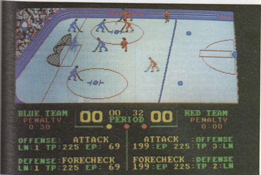 Icehockeyfans aufmerken! Databyte bringt mit “Superstar Icehockey" eine hervorragende Eishockeysimulation auf den Markt. Durch viele interessante Features wird sie alle Eishockeyfans begeistern. Sie können gleich in mehrere Rollen schlüpfen. Wollen Sie Torwart, Feldspieler oder vielleicht lieber Trainer sein? Als Coach können Sie in einigen übersichtlichen Menüs per Joystick vor jedem Match Cracks dazukaufen und “Versager” wieder auf dem Spielermarkt verscherbeln. Die Mannschaftsaufstellung und taktische Anweisungen während des Spiels liegen ebenfalls in Ihrem Metier. Als Trainer lassen sich die strategischen Komponenten des Games voll ausschöpfen. Wer mehr auf Action und weniger auf Strategie steht, läßt den Computer einfach als Coach fungieren und stürzt sich als Mittelstürmer in das wilde Gehacke auf dem Eis. Jedes Match kann wahlweise gegen einen Mitspieler oder gegen einen computergesteuerten Gegner bestritten werden. Deffensivspieler kommen auch auf ihre Kosten. Für Sie bietet sich der Posten des Torwartes an. Doch die verschiedenen Positionen innerhalb des Teams machen nicht den einzigen Reiz des Programms aus. Statistiker kommen ebenfalls voll auf ihre Kosten. Da gibt es beispielsweise eine Tabelle, in der Sie die vergangenen Saisonergebnisse finden, ein Untermenü mit statistischen Ergebnissen über Tore und Gegentore, momentane Position in der Liga, Anzahl der Ausscheidungsspiele Ihrer Mannschaft, usw. Der ST speichert für mehrere Saisons alle Resultate auf Diskette. Sie können Ihrer Mannschaft sogar einen eigenen Namen geben. Nach sämtlichen Spielvorbereitungen kommt der Moment der Wahrheit: Haben Sie die Mannschaft richtig aufgestellt? Sind Ihre Spieler genügend vorbereitet? •t der neue Spieler auch wirklich so gut? Ihre Mannschaft befindet sich auf der Eisfläche, und der Schiedsrichter pfeift die Partie an. Während des 'Kampfes in der Eisarena scrollt aas Bild von links nach rechts und wieder zurück. Sie kontrollieren je nach Wahl Torart oder Mittelstürmer. Letzterer läßt sich frei auf dem Eis bewegen. Die Steuerung der anderen Eishockeycracks übernimmt der Computer. Beim Spiel gegen den ST gibt es packende Duelle, weil der Computergegner über viel Raffinesse verfügt. Da versteht es sich von selbst, daß man ab und zu die Notbremse ziehen muß - sprich “Foul!”. Dazu fahren sie einfach mit Ihrem Spieler in einen Gegner hinein und drücken den Feuerknopf. Ehe Sie sich versehen, liegt der Gegner kampfesunfähig am Boden. Doch geben Sie Obacht, der Schiedsrichter sieht (fast) alles. Für ein grobes Faul bekommen Sie zwei Minuten Strafzeit aufgebrummt. Während dieser Zeit können Sie nicht in den Spielverlauf eingreifen und sehen tatenlos, quasi als Zuschauer, dem Schicksal Ihres Teams zu. Der Schiedsrichter pfeift aber nicht nur Fouls, sondern auch Abseits und andere Regelverstöße. Dadurch wird das Game sehr realistisch. Die Grafik haut zwar keinen Bären vom Hocker, die Spieler sind dafür wenigstens gut animiert. Schade ist nur, daß der Spieler, den Sie zu steuern haben, sich nicht durch eine andere Farbe von den restlichen Spielern abhebt. So wird es manchmal schwierig, seinen Schützling wiederzufinden. Mit Sound ist nichts los in “Superstar Icehockey”. Abgesehen von ein paar Piep-und Plopptönen hört man nichts. Doch auf den Sound könnten Sie sich sowieso nicht konzentrieren, da Sie ständig damit beschäftigt sind, dem Gegner den Puck abzujagen.