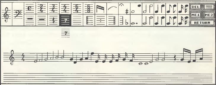 Interessant sein dürfte GAMMA_03 auch für musisch Begabte: Ein gesonderter Menüpunkt läßt das Erstellen von ganzen Musikstücken auf Notenlinien (mit allen Notensorten, Pausen, Schlüsseln usw.) zum Kinderspiel werden (siehe Bild 5).