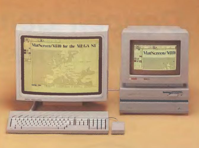 Zu dem Großbildschirm gehört eine Boot-Diskette, die ein verändertes TOS und ein Startup-Programm enthält. Das Startup-Programm erlaubt den Betrieb in mehreren Modi: Man kann zum einen den Ml 10 alleine betreiben, so daß der SM 124 auf dem Matrix emuliert wird. Das sieht ausgesprochen lustig aus, als ob der ganze Desktop unter einer Lupe läge. In diesem Modus läuft so ziemlich alles. Man kann den M110 auch alleine in seiner vollen Pracht verwenden. Dann laufen nur sauber programmierte Anwendungen. Es gibt auch eine große Gruppe von Programmen, die zwar laufen, aber den Bildschirm nicht ausnutzen können, weil der Programmierer, statt brav festzustellen, welche Auflösung die aktuelle VDI-Workstation besitzt, einfach mit festen Screen-Koordinaten gerechnet hat. Schließlich kann man auch den SM 124 alleine verwenden - alles wie gehabt. Der letzte Modus benutzt beide Bildschirme, den SM 124 wie gewohnt. Der Großbildschirm kann jetzt in einem entsprechend programmierten Programm als zweite Ausgabestation verwendet werden. Mir ist allerdings keine Software bekannt, die den Ml 10 in diesem Modus unterstützt.