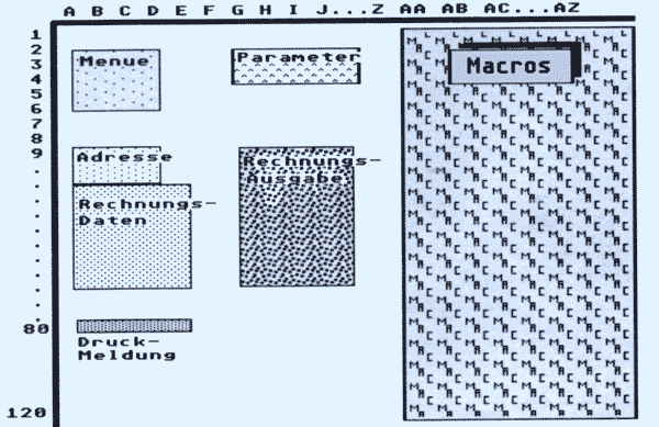 Die Bereiche: Macros, Druckerausgabe, Rechnungsdateneingabe und Menüauswahl finden ihren festen Bereich. Anwender, die bereits mehr als zehn solcher Templates entwickelt haben, wissen es zu schätzen, jedem Template einen sogenannten Lageplan der Bereiche beizulegen.