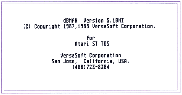 Zum Test lag dBMAN in der Version 5.10 H vor. Die Dokumentation war noch in Englisch. Das Paket besteht im Gegensatz zu frĂŒher nicht mehr aus einem Schuber mit Einlegeseiten, sondern aus zwei gebundenen HandbĂŒchern, die mit den Disketten in Folie eingeschweiĂt sind. Mir persönlich gefallen die Schuber besser, sie sind stabiler, und eine aufgeschlagene Seite bleibt aufgeschlagen, wĂ€hrend das Buch immer wieder zuklappt. Die Einteilung in zwei HandbĂŒcher ergibt sich aus dem universellen Konzept von dBMAN. Das ca. 350 Seiten starke Referenzhandbuch enthĂ€lt eine kurze EinfĂŒhrung und eine Vorstellung der wichtigsten Möglichkeiten des Systems. Dann folgen jeweils in alphabetischer Reihenfolge die Befehle und die Funktionen. Das Referenzhandbuch hat fĂŒr alle Versionen von dBMAN GĂŒltigkeit. Im etwa 70seitigen Supplement stehen die ATARI-spezifischen Dinge wie Installation, Tastatur-, Bildschirmbelegung und noch einmal eine schrittweise EinfĂŒhrung in die Datenverwaltung mit dBMAN.
