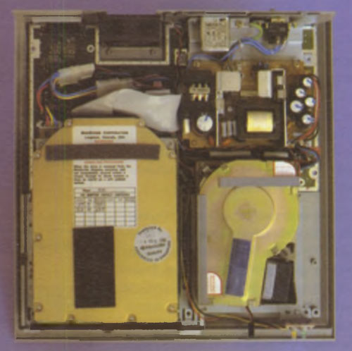 So wirbt man etwa mit dem Prädikat "leise". Nun haben Sie vielleicht im Test der MEGAFILE 60 [1] oder aus eigener Erfahrung (Beileid!) feststellen müssen, daß deren Laufwerk von Miniscribe alles andere als leise ist. Das gilt natürlich ebenso für die EX110. Obwohl man sich Mühe gegeben hat: Das Zweitlaufwerk von PTI ist an sich sehr leise. Der Lüfter ist fixiert, um Vibrationen zu vermeiden: die Lüfterverstrebungen an der Gehäuserückseite sind aus dem gleichen Grund abgesägt und durch ein Fliegengitter ersetzt worden (Bild 3); der Lüfter selbst ist durch einen Widerstand in der Stromzuleitung gedrosselt. Diese Kombination von Maßnahmen nennt der Hersteller übrigens “NR Kit”.