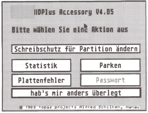 Ein weiteres Mitglied der HDPLUS-Softwarefamilie ist das HD-Accessory (Bild 3). Es faßt nützliche Plattenoperationen zusammen: