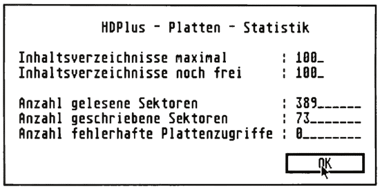 - statistische Daten über den Plattenzugriff ausgeben (Bild 4)