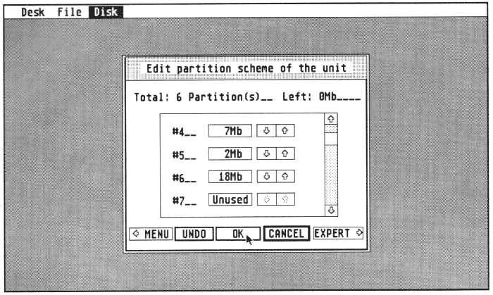 Der Hammer, die Sensation, das Unglaubliche: HDX 3.0 unterstützt beliebig viele Partitionen! Das wurde durch eine Erweiterung des bisherigen Rootsektor-formats erreicht, siehe dazu den Kasten “Neues für Programmierer”. Natürlich sind letztlich doch nur maximal 14 Partitionen sinnvoll, denn auch TOS 1.4 erlaubt bisher nicht mehr als 16 Laufwerke (warum eigentlich?). Doch ist damit endlich der gordische Knoten durchschlagen; ATARI hat einen Standard für die Erweiterung des Rootsektors geschaffen, an den man sich künftig halten kann. Leider ist er zu allen existierenden De-facto-Standards (ICD/SUPRA) inkompatibel, aber besser ein schlechter Standard als gar keiner. Wobei ich, mit Verlaub, den neuen Standard gar nicht so übel finde.