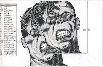 Auf den Zeichenbildschirmen gibt es in jedem Zeichenmodus zusätzlich Hilfsmenüs, die eine Liste der gerade verfügbaren Optionen bereitstellen. Die Menüs erscheinen erstaunlicherweise bei Druck auf die Help-Taste. Die meisten Optionen sind in jedem Modus verschieden, jedoch gibt es immer eine Lupe, eine Mauspositionsanzeige, Zusatzinfos zum Zeichenmodus usw.