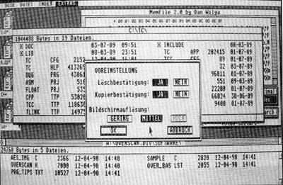 Festgelegt wird der gewünschte Auflösungmodus in einer ASCII-Datei OVERSCAN.INF, die beim Booten eingelesen wird. Dort könnte man beispielsweise mit einem Eintrag "GULAM.PRG " auswählen, dass die Shell Guläm nicht in hoher Auflösung gefahren wird. Übrigens bleibt hier die eingestellte Auflösung beim Aufruf weiterer Programme aus der Shell erhalten - es sei denn, man hätte beispielsweise mit einem Eintrag "WORDPLUS.PRG +" festgelegt, dass WordPlus immer in der höheren Auflösung gestartet wird.