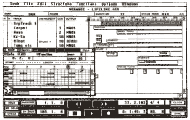 Mit CUBEAT bietet Steinberg ein umfangreiches MIDI-Recording-Programm für den ST an. CUBEAT verfügt über 64 Aufnahmespuren. Es können insgesamt bis 16 Songs im Computer bearbeitet werden. Wie alle neueren Steinberg-Produkte arbeitet auch CUBEAT auf der Grundlage des neuen Multitasking-Betriebssystems M.ROS. CUBEAT bietet dem Anwender die gleiche leicht erlernbare grafische Benutzeroberfläche, die auch schon CUBA-SE bei Profis und Einsteigern populär gemacht hat. CUBEAT gibt eindrucksvoll die Struktur der Komposition wieder. Schnell und direkt läßt sich ein Arrangement mit grafischen Werkzeugen auf dem Bildschirm edieren. Einzelne MIDI-Events lassen sich im Key- und Grid-Editor bearbeiten. CUBEAT ist kompatibel zum Steinberg SMP 24, TIMELOCK, MIDEX und MIDEX plus und läuft auf allen STs mit mindestens 1 MB RAM, s/w oder Großbildschirm. Der Preis beträgt DM 490,-.