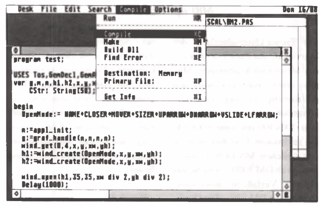 Brandneu zur ATARI Messe präsentiert sich MAXON-PASCAL, ein leistungsfähiges, vollintegriertes Programmentwicklungspaket für ATARI ST/TT. Es beinhaltet GEM Editor, Compiler und Linker und ist sowohl in den Anwenderfunktionen als auch im Programm-Code voll kompatibel zu Turbo Pascal 5.0 auf dem PC. Der kompakte, schnelle Single-Pass-Compiler belegt wenig Speicherplatz, wodurch die Bearbeitung größerer Programme erleichtert wird. Compilierungsgeschwindigkeit: mehr als 20000 Zeilen/min. auf einem normalen ST. Es besteht die Möglichkeit, wahlweise auf Disk oder im Speicher zu arbeiten. Compiler und Linker werden vom Multi-Window-Editor aufgerufen und benötigen daher keine Ladezeit. Durch das von Turbo Pascal 5.0 bekannte UNIT-Prinzip wird ein einfacher, modularer Aufbau von Programmen möglich. Als Standard-Units werden mitgeliefert: GEM/VDI, TOS, BIOS, ST-Pascal, UTIL und PRINTER. Oft benötigte Units können zu Libraries zusammengefaßt werden. Eine komplexe und funktionsabhängige Hilfsfunktion unterstützt den Anwender in Fragen auf die PASCAL Syntax, den Editor und die generelle Bedienung. Der unverbindliche Verkaufspreis beträgt DM 259.-
