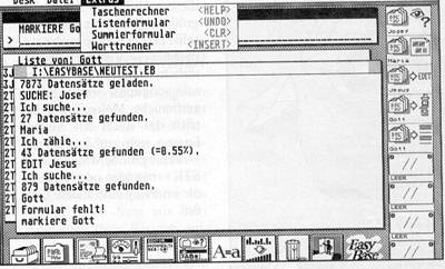 Es ist noch gar nicht so lange her (siehe Heft 6/ 90), da betrat die Firma OMIKRON mit Easybase die Datenbank-Arena. Das Produkt zeichnet sich durch die einfache Bedienbarkeit, besonders bei der Neuanlage einer Datenbank (keine Feldattribute, kein spezieller Initialisierungslauf, keine Schlüssellisten, variable Verwaltung der Feldinhalte) aus, hat aber auch Impulse in Sachen Geschwindigkeit (weil die Datenbasis komplett im RAM steht) und Bedieneroberfläche (viele Symbole, keine Menüleiste) gesetzt.