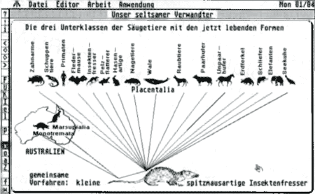 Aus den USA waren Dave und Sandy Small angereist. Ein bißchen Familienidylle am Rande der Messe, da sich beide tageweise mit der Aufsicht der Kinder abwechselten. Sie präsentierten den Mac-Emulator Spectre 3.0, der nun auch auf dem TT läuft. Mit dem GCR-Modul kann man auch Mac- Disketten mit Atari-Laufwerken lesen, so daß ein Datenaustausch und Original-Mac-Software kein Problem mehr darstellen. Es werden aber nur Mac Plus-ROMs unterstützt, so daß es keine Farbunterstützung für entsprechende Software gibt. Mit der MegaTalk- Karte läßt sich ein Mega ST in ein AppleTalk-Netz integrieren. Was will man mehr, außer einem Original-Mac?