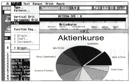 Natürlich war das Hauptaugenmerk bei der Hamburger Firma SciLab auf das Präsentationssystem SciGraph 2.0 gerichtet. Mit ihm lassen sich anschaulich Präsentationsgrafiken erstellen und beispielsweise belichten oder auch einfach nur drucken. SciGraph wurde auf der CeBIT erstmals auch in einer MS-DOS-Version gezeigt.