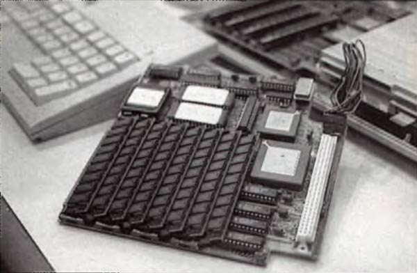 Die beiden zeigten außerdem eine Beschleunigerkarte, die auf einem 68030-Prozessor beruht und mit 33 MHz getaktet wird. Die Karte läßt sich zusätzlich mit max. 8 MB Fast-RAM bestücken. Um diese zu verwalten, verfügt sie über eine eigene MMU. Auch ein Sockel für einen Arithmetik-Coprozessor 68881 /68882 und ein angepaßtes TOS (angeblich TOS 2.0) in EPROMs ist auf der Karte zu finden. Da sie für den Bus der alten Mega-Rechner gedacht ist, ist sie allerdings für Mega STEs ungeeignet.