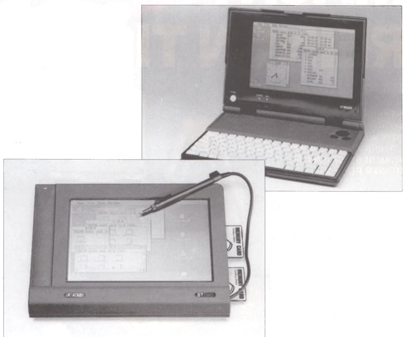 Ein weiterer kompakter ST wurde in Form des STPad vorgestellt. Der Prototyp benötigt zur Eingabe weder eine Tastatur noch eine Maus, sondern alle Eingaben werden mittels eines Stiftes ge  macht. Man schreibt auf das LC-Display wie auf ein Blatt Papier. Das funktioniert über eine intelligente, lernfähige Schrifterkennung. Ein Wechsel zwischen Schrift und Zeichnungen ist problemlos möglich. Hier wird ein Stück Zukunft war, indem der Computer ein normales Blatt Papier ersetzt und die Daten dann weiterverarbeiten kann. Man kann den STPad nach Beendigung eines Arbeitsschrittes ohne Datensicherung auf Stand-By schalten. Später kann man dann an genau derselben Stelle weitermachen. Der STPad hat die Größe eines DIN A4-Blattes und wiegt ähnlich wie der ST-Book nur etwas mehr als 1 kg. Auch die Betriebsdauer ohne Netzstrom beträgt ca. 10 Stunden. An Speicherkapazität stehen Versionen mit 1 oder 4 MB zur Verfügung. Anstelle von Diskettenlaufwerken findet man bei STPad zwei „Silicon-Drives-Steckplätze“. In beide kann man entweder RAM- oder ROM-Karten von bis zu 4 MB Speicherkapazität einschieben. Ansonsten finden sich die bekannten ST-Schnittstellen und ein Anschluß für eine externe Tastatur. Für das STPad gibt es aber noch keinen Liefertermin.