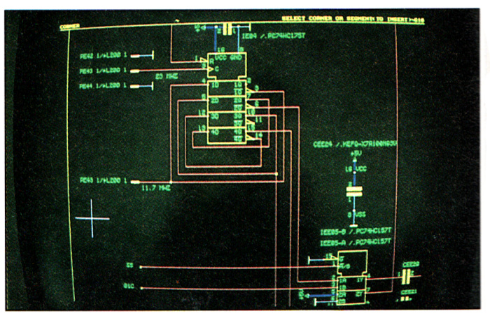 Eine typische Computeranlage zum Entwerfen von Leiterplatten (Schaltbild und Layout) könnte aus einem 386er-AT mit Coprozessor, Festplatte, 19"-Farbbild- schirm und einer VGA-Karte (768*1024 Bildpunkte, mehrere Farben gleichzeitig darstellbar) bestehen. Da fehlt dann noch die Software, die sich durch alle Preisklassen zieht: Sie können für ein Layout- Programm 1000 DM oder aber auch 50.000 DM bezahlen - Sie haben „die freie Wahl“.