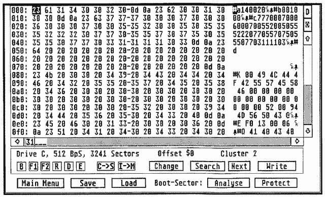 Der Monitor erlaubt das Anzeigen und Verändern von Sektorinhalten und ist in der Lage, ein Medium nach Zeichenfolgen zu durchsuchen. Was das Ändern von Daten betrifft, mangelt es hier allerdings an Komfort. So ist es nicht möglich, Änderungen direkt einzutippen und so die alten Daten zu überschreiben. Neue Daten müssen in einer Dialogbox eingegeben werden, was das flüssige Arbeiten hemmt. Allerdings kann es durch diesen Eingabemechanismus kaum zu Fehleingaben und daraus resultierenden Datenverlusten kommen.