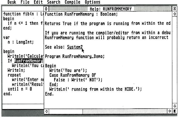 Bild 1: Praktisch: die OnLine-Hilfe von MAXON-Pascal