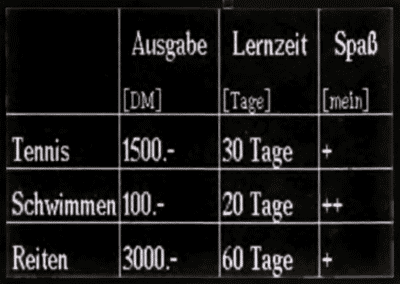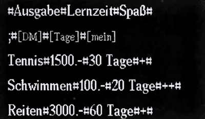 Ein echtes Bonbon ist der Tabellensatz. Die einzelnen Elemente der Tabelle werden durch ein (definierbares) Zeichen getrennt eingegeben, der Tabellensatz aktiviert, einige Parameter eingestellt, und fertig ist die Laube... pardon, die ordentlich aussehende Tabelle.