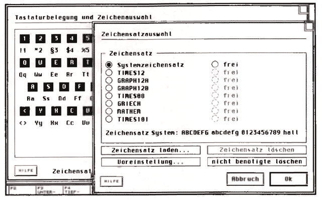 Bis zu 16 Zeichensätze dürfen gleichzeitig in einem Dokument verwendet werden. Zwischen den ersten 10 kann per Tastaturbefehl umgeschaltet werden.