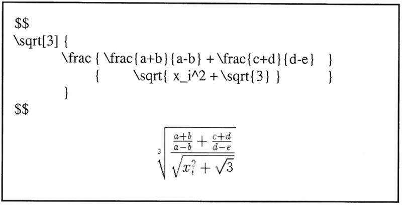 Richtig interessant wird es aber, wenn man die Befehle fĂŒr BrĂŒche und Wurzeln in beliebige Tiefe schachtelt (siehe Beispiel 2).