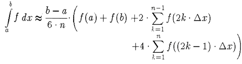 & \left. \displaystyle + 4\cdot\sum_{k=1}^n f((2k-1) \cdot \Delta x )