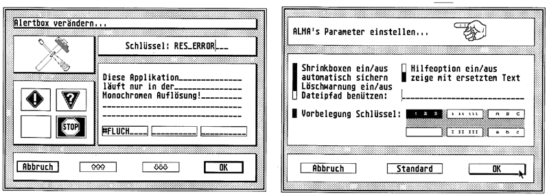 Das Programm ALMA (ALertbox-MAker) ist ein Programmierer-Tool, um die, wie es der Name schon sagt, Herstellung von sogenannten Alertboxen (auch oft GEM-Warnanzeige genannt) bei der Programmierung einer GEM-Umgebung auf einem Atari ST oder TT wesentlich zu vereinfachen.