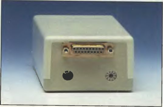 Die „Größe“ dieses Gerätes beträgt nur 16x8x5 cm - und auf diesem Raum finden Harddisk und ICD-Host-Adapter Platz. Zusätzlich belastet ein externes Netzteil das allgemeine Raumkontingent; es verschwindet allerdings hinter bzw. unter dem Schreibtisch. Die Vorderseite der kleinen Box zieren neben dem Ein- Ausschalter zwei LEDs für Power-On und Zugriff. Hinten befinden sich der Stromversorgungsanschluß und die DMA-In-Buchse. -j Die DMA-Adresse verändert man mit einem Wahlschalter. Der DMA-Port ist allerdings leider nicht durchgeschleift; das dürfte angesichts der Größe des Gehäuses auch kaum mehr machbar sein.