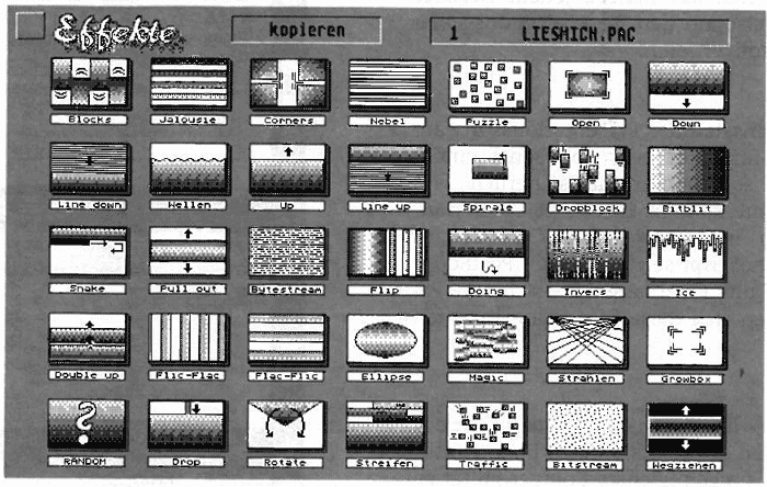 Die Anzahl von 35 Überblendeffekte (s. Bild 1) kann sich sehen lassen. Das scheint mir auch die Stärke dieses Programms zu sein. Beim kurzen Test aller Effekte kamen mir einige denn doch gähnend lang vor - vielleicht könnte man eine Zeitbeschränkung oder Geschwindigkeitsvorgaben für die Effekte einbauen? Leider gibt es keine Möglichkeit, einen langwierigen Überblender per Tastendruck abzubrechen oder abzukürzen.