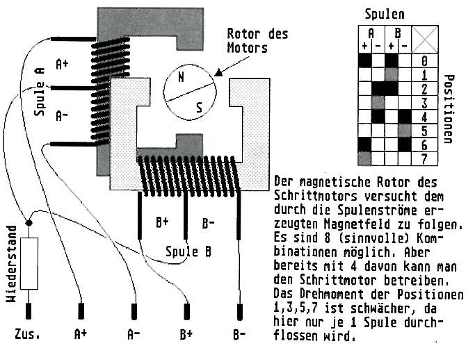 Bild 4: Funktionsschema eines unipolaren Schrittmotors
