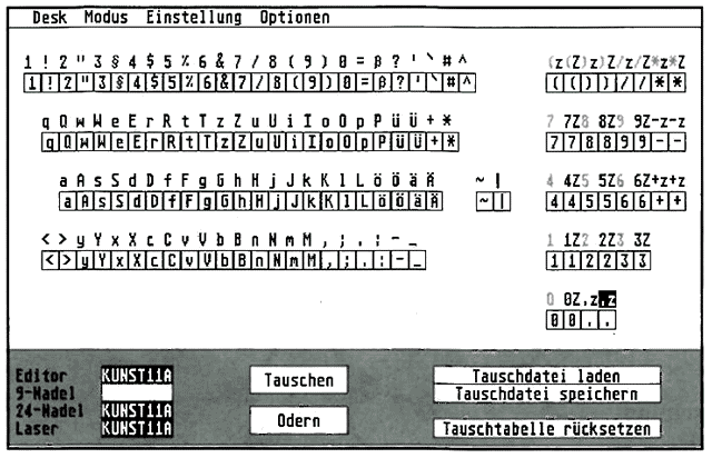 Im Modus "Font tauschen" lassen sich über abspeicherbare Tabellen in Sekundenschnelle individuelle Belegungen erstellen.