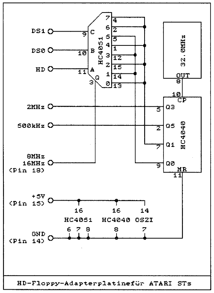 Für andere ST-Modelle kann mangels konkreter Erfahrung keine detaillierte Einbauanleitung gegeben werden; entscheidend ist, die Leiterplatte mit Pin 2 des Shifters (Pin 8 des Oszillators), mit Masse (Pin 7 des Oszillators) und mit +5V (entsprechend Pin 14) zu verbinden. Alle Verbindungen, insbesondere Masse, kurz und dick, besser noch mehradrig, ausführen!!