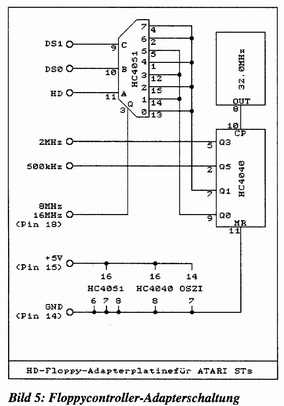 In diesem Zwischenstadium (bezüglich der Sicherheitshinweise möchte sich der Autor nicht ständig wiederholen) zusammengebaut und eingeschaltet, sollte der Rechner ganz normal funktionieren. Erscheint jedoch nach dem Einschalten kein Bild, haben Sie entweder einen Kurzschluß gebaut (das Netzteil 'singt' dann), oder aber die 32MHz-Taktleitung zur Oszillatorfassung ist fehlerhaft. Ist Zugriff auf die Floppy unmöglich, ist vermutlich ein Fehler in der Frequenzteilungsschaltung, der mit Oszilloskop oder Frequenzzähler gesucht werden muß, oder aber die Leitung 'HD' liegt nicht auf Masse. (Siehe auch die erklärenden Hinweise zum HD-Adapter im nebenstehenden Textkasten 1, die hier zu weit führen würden).