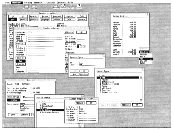 Von Comtex wurde das Business-Auftrags-Abwicklungssystem Baas vorgestellt. Baas unterstützt Multitasking und ist multiuserfähig. Über eine Auftragsmaske werden die meisten zusätzlichen Funktionen erreicht. Dadurch wird eine große Übersichtlichtkeit gewährleistet. Eine Profitkalkulation bei der Angebots- und Rechnungserstellung erleichtert die schnelle Abwicklung von Geschäften. Baas verwaltet einen Kunden-, Lieferanten- und Artikelstamm. Unter einem Oberbegriff lassen sich mehrere Artikel auf einen Schlag in die Auftragsmaske einsetzen. Baas enthält außerdem eine Lagerverwaltung, ein Kassenbuch, umfangreiche Druckoptionen, ein dreistufiges Mahnwesen, ein Statistikmodul, eine Zeiterfassung für Mitarbeiter, eine PLZ-Datenbank u.v.m. Ein integriertes Hilfesystem fehlt auch nicht. Baas gibt es in einer Light- und einer Profiversion.