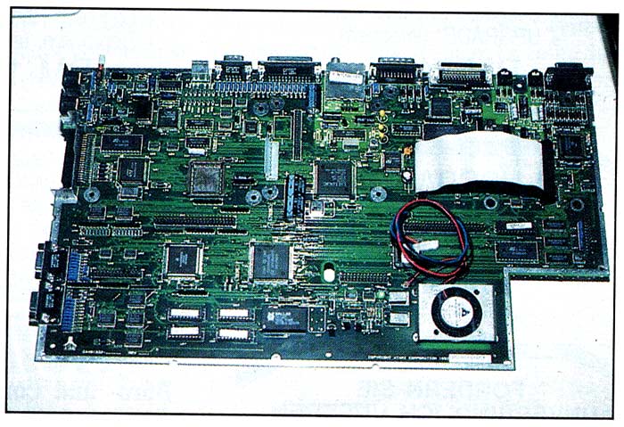 Am ersten Morgen der ATARI-Messe sollten zunächst die Vertreter der Presse informiert werden. In ungewohnt großer Runde versammelten sich alle bekannten Gesichter aus der Szene im Pressezentrum, das ATARI in Halle 11 eingerichtet hatte. Alwin Stumpf, Geschäftsführer von ATARI-Deutschland, Bill Rehbock, Richard Miller und natürlich die Tramiel-Söhne Sam und Leonard hatten es sich nicht nehmen lassen, den neuen Falcon persönlich der Fachpresse zu präsentieren. ATARIs Chefentwickler Richard Miller erklärte, nicht ohne gewissen Stolz in den Augen, die hardwareseitigen Besonderheiten des neuen Computers. Erstmals bekam man auch die komplett überarbeitete Platine des Falcons zu Gesicht. Vollständig in platzsparender und kostengünstiger SMD-Technik aufgebaut, macht sie den erfreulichen Eindruck eines fertig entwickelten Seriengeräts. Laut Aussage von Alwin Stumpf läuft die Produktion in Taiwan bereits auf vollen Touren, und man erwartet noch im September eine größere Lieferung für Deutschland. Bis Ende Oktober sollen dann alle 80 Fachhändler im Bundesgebiet flächendeckend mit Falcons versorgt sein.