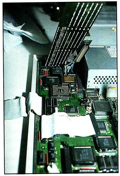 Der Star auf dem 3K-Stand war zweifellos das neue Tower-System Tower MT2. Komplett in modularer Bauweise aufgebaut, bietet der Tower einen Einschub für ein TT-030-Motherboard und einen Slot für jede denkbare VME-Bus-Erweiterung. Ein 200-Watt-Schalt-netzteil sorgt für den nötigen „Saft“. Optimale Kühlung erhält das System durch einen geräuscharmen Axial-Walzenlüfter. 3K liefert diesen Tower ab sofort mit jedem Computerbild-System aus. Er läßt sich aber auch als Leergerät zur Eigenbestückung bestellen.
