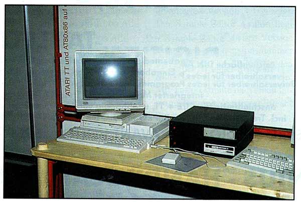 Den bekannten MS-DOS-Emulator ATonce-386SX für ST- und STE-Computer gab es am Stand von Vortex zu sehen. Gerüchte, Vortex würde schon auf der Messe einen funktionsfähigen Emulator für den Falcon 030 zeigen, bestätigten sich leider nicht.