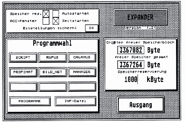 Für viele Anwender aber, die nicht gleich auf eine MultiGEM- oder MultiTOS-Erweiterung umsteigen wollen, dürfte ein Programm interessant sein, das in der ACC-Problematik einen völlig anderen Weg geht: EXPANDER.